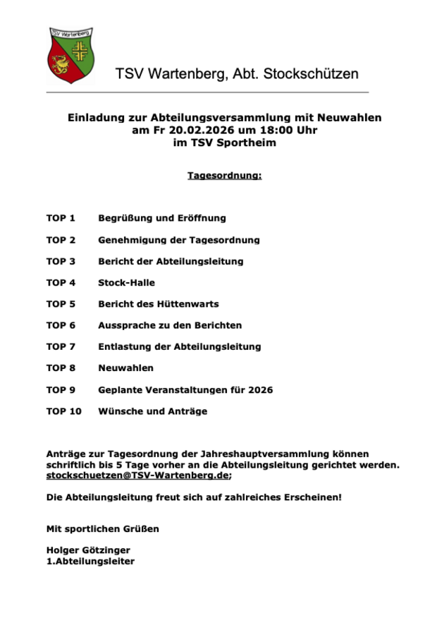 Einladung zur Abteilungsversammlung 2026