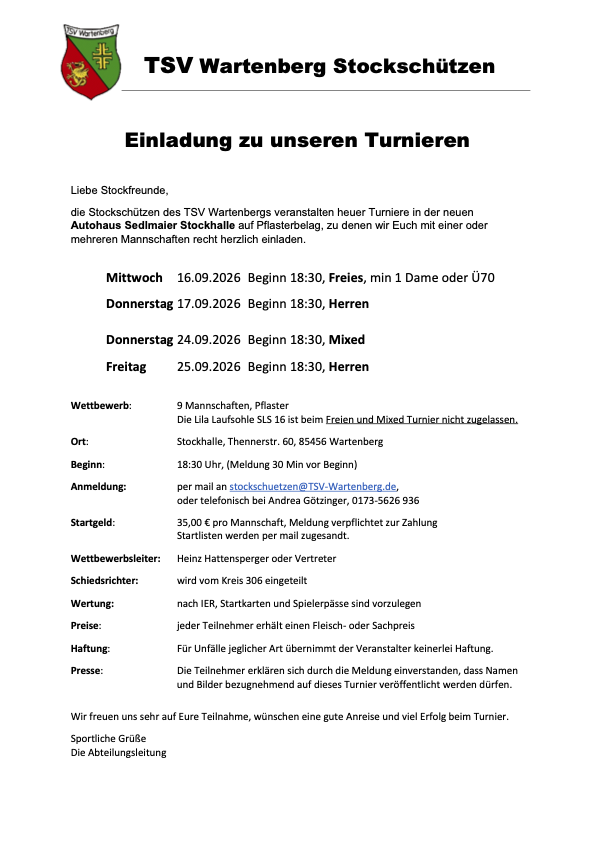 Einladung Turnier Stockschützen TSV Wartenberg